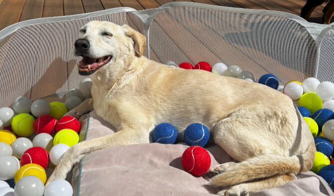...but only after we curated her a Sacred Goodbye moment: sinking into a ball pit of hundreds of tennis balls. When the moment to say goodbye came, we surrounded her with t-shirts carrying the scent of her favorite humans as her beloved mama and papa sang her her favorite songs, looking into her eyes until they closed shut.