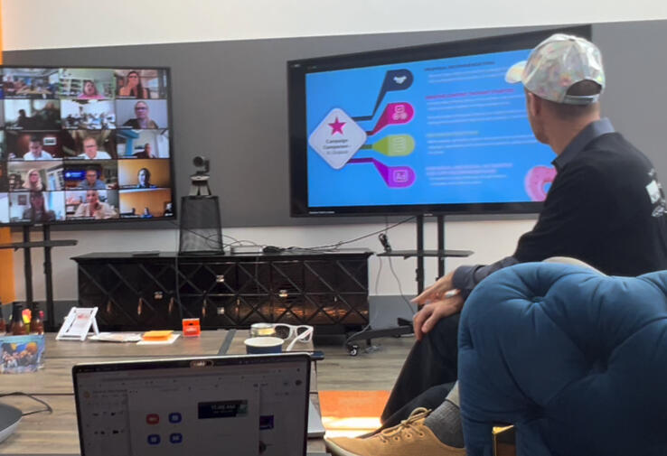 ➔ Cardboard cutouts of his exec team as photobooth “stand-ins” for those who couldn’t fly in from across the world